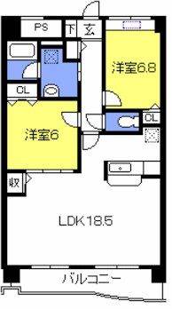 | 間取り詳細 | 洋室 6.8畳 、 洋室 6畳 、 LDK 18.5畳 |