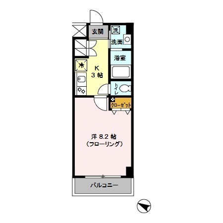 | 間取り詳細 | 洋室 8.2畳 、 K 3畳 |