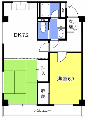 | 間取り詳細 | 洋室 6.7畳 、 和室 6畳 、 DK 7.2畳 |